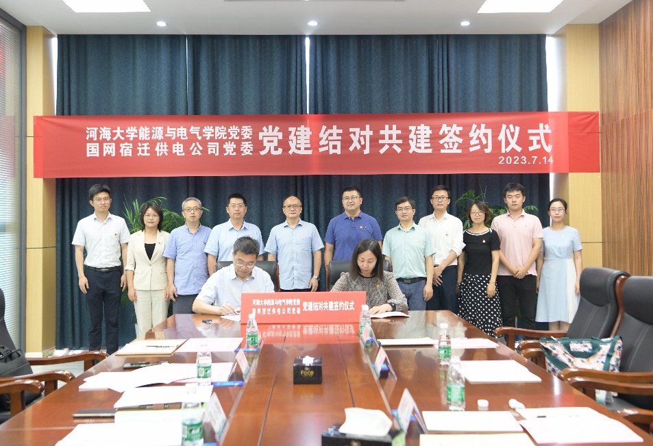 在此基础上,双方签订了《河海大学能源与电气学院党委、国网江苏省电力有限公司宿迁供电分公司党委结对共建协议》,明确了双方将在“党组织共建、人才共育、科技共研”三个方面开展共建,积极搭建产学研合作平台,进一步发挥各自优势加快科技创新与科技成果转化推广。
