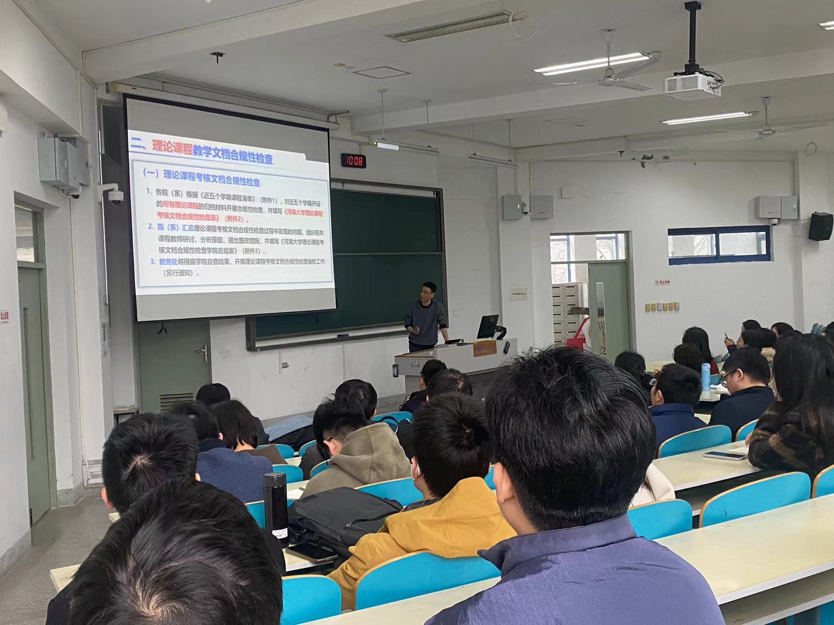 为规范课程教学文档建设,规范课程教学过程性考核,保障和提高教学质量,棋牌 于3月14日上午在勤学楼5212召开课程教学文档合规性检查工作布置会。