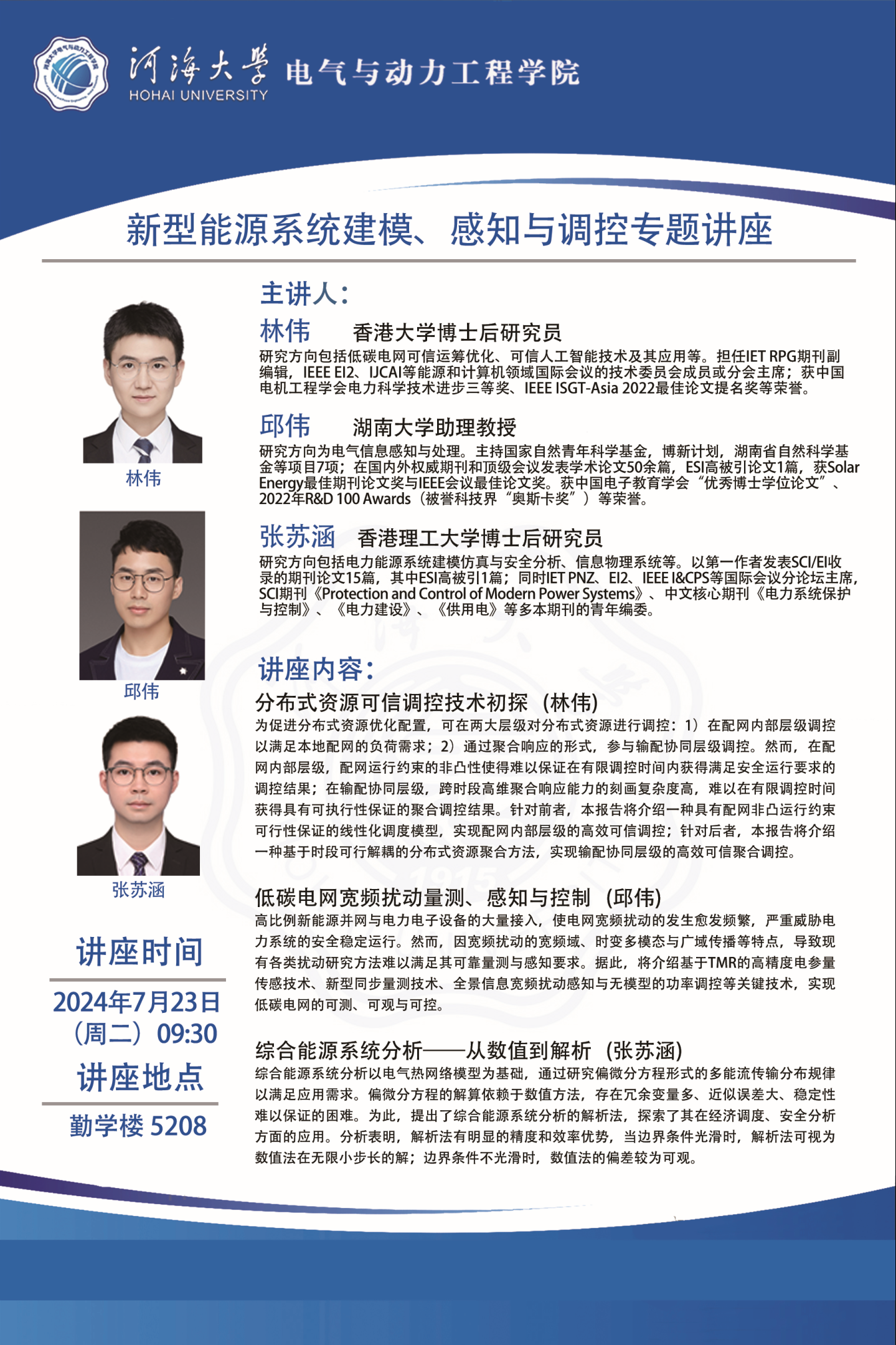 学术报告:新型能源系统建模、感知与调控专题讲座