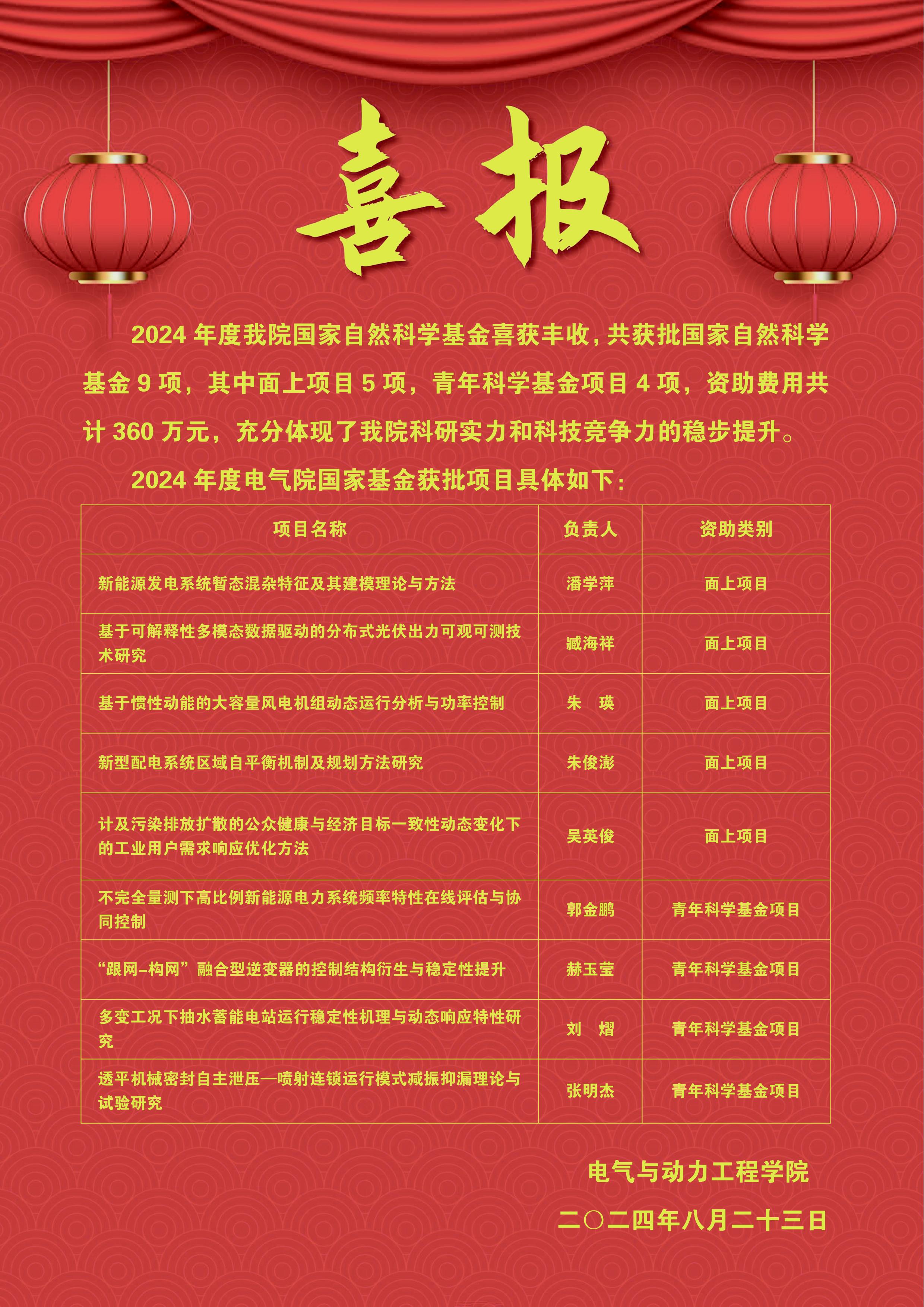 喜报:2024年度棋牌 国家自然科学基金喜获丰收