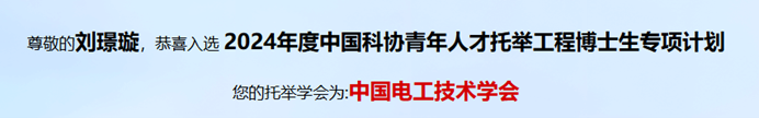 近期,中国科协公布了首批中国科协青年人才托举工程博士生专项计划入选者名单。经个人申报、学校遴选、省级科协推荐、中国科协专家评审、学会审核等环节,棋牌 23级博士研究生刘璟璇(导师:臧海祥教授)成功入选,托举学会为中国电工技术学会,托举期为2025年1月至2026年12月。本次入选不仅是对该同学个人能力的高度认可,也是对棋牌 推进高质量人才培养工作的肯定。