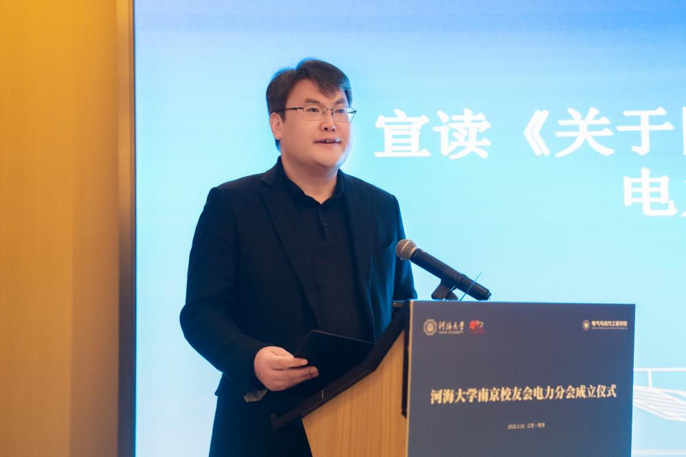 河海大学南京校友会执行会长鲁宏振宣读了《关于同意成立河海大学南京校友会电力行业分会的批复》,标志着分会正式获得官方认证。