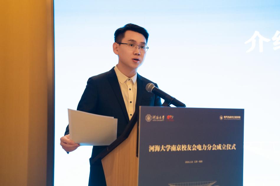 2025年2月16日,河海大学南京校友会电力分会成立仪式在南京举行。河海大学校长助理、研究生院院长吴峰,河海大学南京校友会执行会长鲁宏振,河海大学南京校友会副会长樊友国、李九虎,河海大学南京校友会副秘书长柯星,河海大学国内合作发展处处长赵冰,棋牌-棋牌平台-棋牌游戏赌博 党委书记吴洪彪,棋牌-棋牌平台-棋牌游戏赌博 院长张犁,以及学校、学院其他相关领导、老师,特邀历届校友代表共五十余位嘉宾共同见证,本次仪式由电气学院2014届校友张健钊主持。