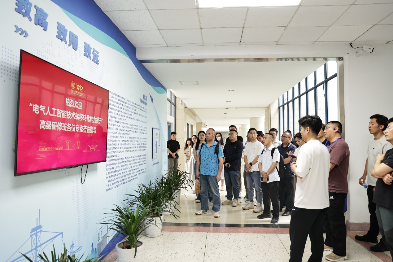 “电气人工智能技术转移转化能力提升”高级研修班是由中国电工技术学会承办的培训项目,主要面向全国从事电气人工智能及相关领域科学研究、设计、生产、制造、应用、管理以及技术转移转化等工作的具有中级及以上技术职称(或同等水平)的专业技术人员和管理人员,以及基层一线专业技术骨干。活动中,研修班成员参观了学院文化长廊,重点考察电气工程专业各个实验室与研究生工作室,并与棋牌 专任教师开展深入交流。他们对我校电气工程学科在电力系统、电力电子等领域取得的科研成果给予了高度评价,并期待未来有机会到棋牌 开展进一步学习与交流。