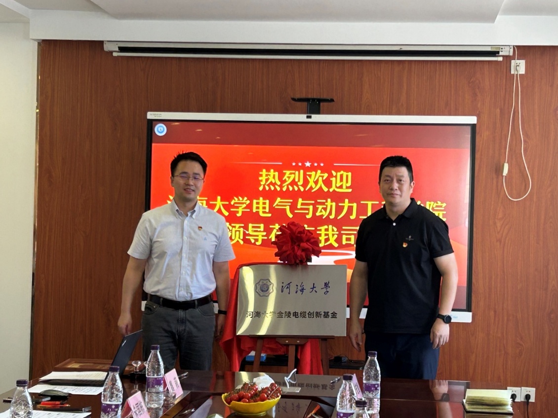 朱皓和孙国强共同为河海大学金陵电缆创新基金揭牌
