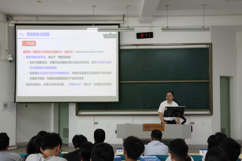 在专业介绍环节,金宇清副院长、张玉全副院长分别就电气学科和动力学科的专业特色、师资阵容、科研平台、行业动态及就业趋势等方面深入剖析。在导师团队介绍环节,学院数十支科研团队向同学们充分展示了团队概况、核心研究领域、特色优势及代表性科研成果等内容。