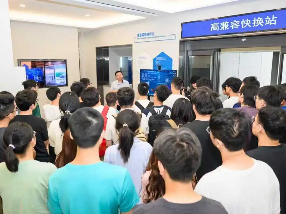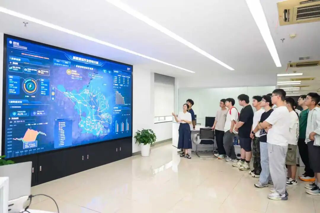 研学首站,同学们来到了智慧车网互动(V2G)试验平台。这里仿佛是未来智慧能源世界的“微缩窗口”。专家详细讲解了如何通过技术手段,让电动汽车从单纯的“用电体”转变为可调节的“移动储能单元”。同学们亲眼目睹了电动汽车与电网之间如何进行双向、有序的能量互动,理解了这项技术对于消纳可再生能源、实现电网削峰填谷的重大意义。