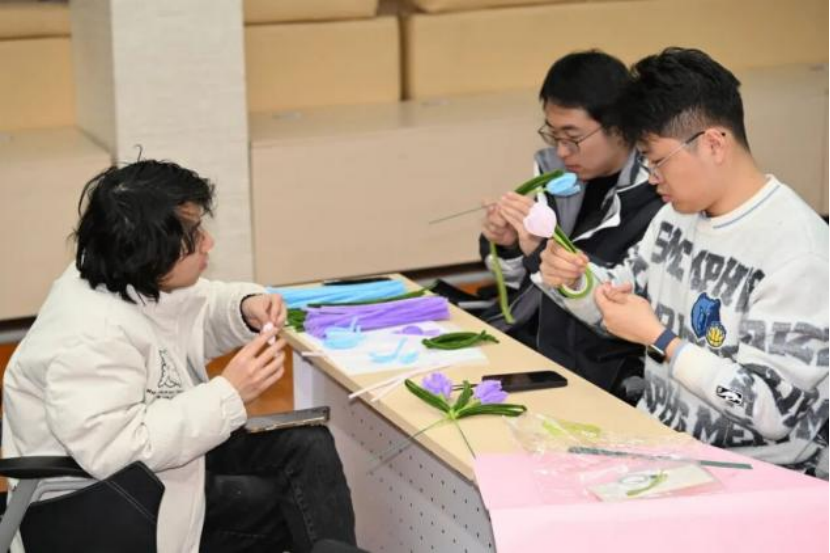 为庆祝第116个“三八”国际劳动妇女节,3月5日棋牌-棋牌平台-棋牌游戏赌博 研究生会在勤学楼5208举办了一场别开生面的手工活动——“指尖生花,赠予芳华”。