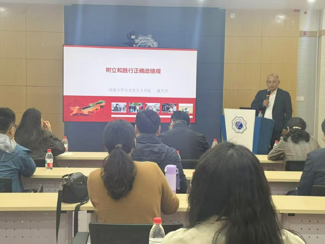 2026年4月10日,棋牌 、大禹学院联合开展“树立和践行正确政绩观”学习教育专题党课。党课邀请马克思主义学院董大亮老师主讲,学院领导班子成员、党支部书记、师生党员代表参加了学习。